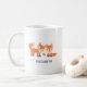 Ett mugg med en bild på 2 orangar tittar sött och lycklig.
