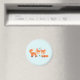 En magnet med en bild på 2 orangars rävar tittar söt och lycklig. Ljusblå bakgrund.