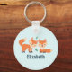 En nyckelkedja för personlig med en bild på 2 orangar tittar söt och lycklig. Ljusblå bakgrund.