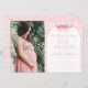 Den här bohemiska coquette "En söt liten flicka är på väg" temat flicka duschinbjudan visar en känslig rosa-buk. Inbjudan läggs till med modern kalligrafiktext som skapar en tidslös och elegant design. Perfekt för att ange tonen för ett minnesvärt firande.