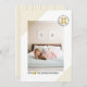 Elegant guld rand contemporary Nyår 2024 års enkla och minimalistiska helgdag-kort. En stripe mönster i guld rand täcker det övre lämnat hörnet och hörnen i grund höger som accentueras med ett guld-hjärta.