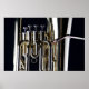 Ett foto av ett guld tuba euphonium mot en svart bakgrund.
