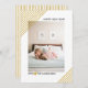 Contemporaryn guld rand Nya årets helgdag-fotokort. Ett randat mönster av diagonalt rand täcker det övre lämnar hörnet och grund högernas hörn accentuerade med ett guld-hjärta. Fotografi © Storytree Studios, Stanford, CA