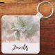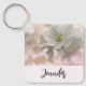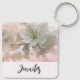 En nyckelring med ett foto med ett äpple träd gren som visar sina vackra vita äppelblommar.