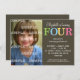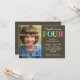 "Fyra" i ord utmärker sig på födelsedagsfest inbjudan för alla barn som blir fyra år gamla. Varje brev behandlas med ett annat färglöst mönster. All party-information skrivs ut mot rik brun. Lägg till en bild av det underordnade till det lämnat och lägg till eventuell extra på det andra eller ta bort det om du vill lämna det tomma. Finns med matchande produkter.