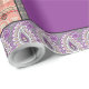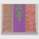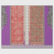 Konstruktionen visar ett vackert detaljerat tyg mönster. Här är en uppdelning av inslag: ・ Centralt design: En fet lila-remsa är fokuspunkten, upplindad av intrikat, symmetriskt vitt mönster på en grått-bakgrund. ・ Omgivande område: Mindre, repetitiva motiv i en brunaktig nyans mot en ljusare bakgrund, som kan tyda på smak eller broderier. ・ Gräns: mönster gränsas till ett annat detaljerat vitt och grått som liknar det centrala, men på en mindre .