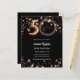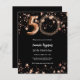 En modern fotoinbjudan till snyggten för 50:e födelsedagsfesten. En svart bakgrund, ro guld. Dekorerad med ro guld stjärnor. Anpassa och lägg till information om party. 1 lakan = 1 inbjudan tryckt kant till kant.