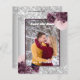 Faux silver tittar bakgrund, dekorerad med burgundy och rosa blommigtar, blommor och faux silver glitter, gnistor. Anpassa och lägg till information om foto, namn och bröllop.