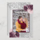 Faux silver tittar bakgrund, dekorerad med burgundy och rosa blommigtar, blommor och faux silver glitter, gnistor. Anpassa och lägg till information om foto, namn och bröllop.
