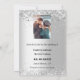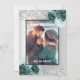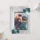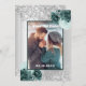 Faux silver tittar bakgrund, dekorerad med grönt blommigtar, blommor och faux silver glitter, gnistor. Anpassa och lägg till information om foto, namn och bröllop.