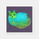 Bild på kattvismisk kattkonst i den blå tjocken. För kattälskare överallt. Cute original illustration vattencolor art. Blå och grönt kattlivema.