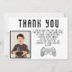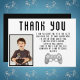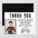 Tackkort med bild på tv-spelskontroll för födelsedag. Spelkontroll och svart text på vit bakgrund. Lägg till din text, foto och namn.