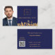 En klassisk marin blå bakgrund, med en faux guld city skyline som dekoration. Anpassa och lägg till ditt företag, din logotyp, ditt profilfoto och en text på framsidan. Golden brev Back: Mallar för namn, titel, mobilt nummer och QR-kod till din egen webbplats.