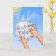 Uppmuntra honom/henne att nå stjärnorna med detta tankekorts ursprungliga digitala målning av ett ljusflått barns händer som håller upp en molnformad skylt med texten "Bild Detta" mot ett soligt blå himmel. Inuti text: "Spelar ingen roll du kan se och tro, du kan uppnå. (Jag tror på dig)".