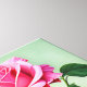Bilden visar en trio rosa ros, som är artificiellt placerad mot en mjuk grönt. Målningen fångar blommornas skönhet i detalj och varje petal återges med verklighetstrogen precision. Rosans skiftande nyanser, från mjuk till djupare, mer mättad nyans, skapar en fängslande visuell bild. Löven för lush-grönt ger en slående kontrast som förbättrar dispositionens totala viskhet. Konstnärets skickliga använda av ljus och skugga lägger till djup och dimensioner i målningen, och skapar att ro ser nästan tredimensionellt ut. Den övergripande effekten är en firande av naturens elegans.