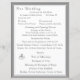 Utformningen innehåller texten i en elegant, silver i ett silver och vitt gräns. Texten har rätt format för ett katolskt Bröllop. Mycket elegant. Designad för samordning med den katolska bibelsorten Bröllop.