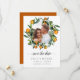 Elegant Citrus botanical sparar datumet ett favoritfoto av förlovning omgivet av en rund krans av pulant grenar av mandarincitrusfrukter och klementin, elfenbensfoto och löv, "spara datumet" i kalligrafi-skriptbokstäver, med namn, bröllop datum och plats under i klassisk blommar-serif-typ. Vibranta blad av grönt bladverk, orange av ljus tangeriner och mjuka vita blommor för detta färska och harmoniska färg-program. Baksidan har en kompletterande bakgrund till orangen. Perfekten för Medelhavet inspirerade bröllop, det sicilianska temat bröllop och boho botaniska bröllop hela året runt. Dessa utformningar kan vara personlig för ditt särskilda tillfälle och skulle vara perfekt för bröllop, möhippa, förlovningsfest, födelsedagsfest och många fler särskilda tillfällen. *** För begäran om anpassningsbar, skriva ett e-postmeddelande på citronelladesign@gmail.com.