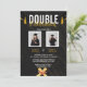 Elegantens inbjudan till studentfest för en dubbla firande, som innehåller en trendig lyxfärgad bakgrund, två studentmössa- och guld-diplom, en bild av varje student och en modern svart typsnittsmall som lätt kan anpassas. Perfekt för att hedra två student, den här inbjudan innehåller blanksteg för både namn och foton - skapar det vara ett perfekt val för syskon, bästa vänner eller klasskompisar som är värd för ett gemensamt firande.