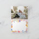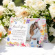 Jag vill uttrycka er tacksamhet i stil med detta vackra boho blommigt bröllop tack vare ert kort. Med handmålade vattenfärgblommor i vibrerande toner har det här vikta kortet utrymme för tre omhuldade foton från bröllop och ett uppriktigt budskap inuti. Elegantens utformning blandar romantiska blommigtar med en modern, mejerivänlig layout, skapar den perfekten för dina gäster. Ett tänkvärt sätt att uppskatta samtidigt som du tar del av din speciella dags glädje.