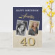 Rustic Navy Blue Lycklig 40 Birthday 2-fotokort. Rustisk beige och mörk blått bakgrund. Lägg till 2 foton på framsidan - du kan lägga till före och efter fotot.