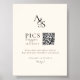 Bilder händer - eller så gjorde det inte! Missa inte gästfotografierna och ge dem möjligheten att bilder med dig. Elegant, Klassisk, Monogram, Vit, Fotogalleriwebbplats, OSA, QR-kod, Poster. Personlig med dina monogram, din fotogalleriwebbplats, skannerbar QR-kod och ett meddelande till behållan dina vänner och din familj om din kommande speciella dag.