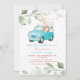 Unik inbjudan till varje flicka att duscha barn med vattendjup rosa vintage bil med djur, löv och blommor.