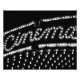 Ett svart och vitt foto av en teatermarkeringsram med ett filmtecken.