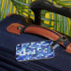 Bilduppspelningspixlar blå kvadrat Mönster Bagagebricka