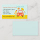 En visitkort för en bil tvättar eller att specificera som är tjänste-. Designen presenterar en bil för tecknadstilblått med vatten tappar och lokalvårdtillförsel på en blåttbakgrund med en gul gräns.