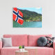 Kanvastryck av den norska flagga på en bilfärja mellan Solvorn och Urnes på en fjord i Norge.