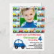 Personifiera detta bilbarns födelsedagsfest inbjudan. Den är så lätt att göra, ändrar precis specificerar av partyet, tillfogar ett foto av ditt barn, och du göras! Presenterar mång- kulöra bilar, och lastbilkörning besegrar gatan. Några inslag Goodness&Fun