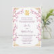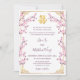 Den här traditionella kinesiska bröllopsinbjudan innehåller en gyllene asiatisk ram, rosa körsbärssymboler och en gyllene konstnärlig lyckosymbol för dubbla på vit bakgrund. Med traditionell kinesisk text och rödkörsbär på blommar på baksidan.