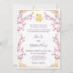 Den här traditionella kinesiska bröllopsinbjudan innehåller en gyllene asiatisk ram, rosa körsbärssymboler och en gyllene konstnärlig lyckosymbol för dubbla på vit bakgrund. Med traditionell kinesisk text och rosa körsbärs-blommar på baksidan.