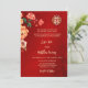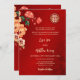 Denna traditionella kinesiska bröllopsinbjudan till BILINGUAL. Blommor med röd, orange och gult, med röd, strålande bakgrund. Kinesisk bröllopsinbjudan med en gyllene lyckosymbol för dubbla. Baksidan är en traditionell kinesisk anpassningsbar.