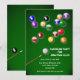 En perfekt inbjudan för alla biljardfester. Kortet är lätt att anpassa med din text, teckensnitt, typsnittsfärg, pappersform och val av sex papperssorter.