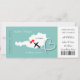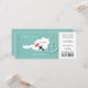 En rolig men stilren bröllopsinbjudan i stil med ombordstigningskort/biljett för par som gifter sig utomlands i Österrike som visas i en vit kart-silhuett på tealblått med söta röda kärlekshjärtan, flygplanssilhuett och vit virvlande hjärtform. Baksidan av ombordstigningskortet har en redigerbar fotomall och utrymme för dina bröllopsdetaljer.