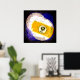 En grungande utformning av boll bakom en Billiards boll nummer 9.