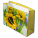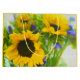 Skadliga solblommor med en solig gult som bakgrund ge oss en gladlysten känsla.