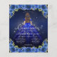 Blommigt Royal Blue Navy Blue Princess Gown Dress Guld Glitter Gnistra 15:e födelsedagsinbjudan Quinceanera