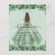Blommigt Sage Grönt Princess Gown Dress Glitter Gnistra 15:e födelsedagsinbjudan Quinceanera