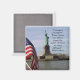 "Mod är smittsamt. När en modig man tar ställning blir ofta andras ryggrad stympad." Billy Graham citerar om frihetsgudinnan med amerikanska flagga bakgrundsmagnet.