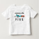 Roligt tävling bilnöjesfjortskjorta med vattenfärg som illustrerar vintage blå bil med rött flammor. Texten på framsidan säger "marschera in i" och du kan lägga till ditt barns och ditt barns namn och ålder.