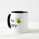 Har den lyckliga kaffemuggen för biet ett gulligt gult bisurrande omkring.
