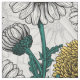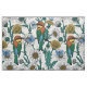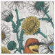 Bin, blå fjärilar och daisy på vita tyg