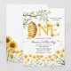 Be Inbjudan till första födelsedag. Bin Blommigt första födelsedagsinbjudan. Vår lilla honung första födelsedagsinbjudan. Honungsbiets Gult Blommigt Greenery.