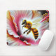 Ett detaljerat närmande av ett livligt honungsbin som interagerar med en levande hibiscus blomma, där naturens skönhet och den viktiga pollinering som processaa fångas i levande färg och med en komplicerad detaljrikedom betonas.