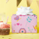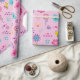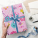Blommor och fåglar i färglös tecknad över ljus rosa bakgrund