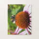 En fotografisk design av ett vackert, vitt skäggigt humlor som samlar pollen på en rudbeckia-blomma.