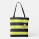 tecknad av ett bin med svart och gult rand. bilder på båda sidor.