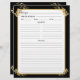 Här är perfektens dubbla-sida för recept som är designad att samordna med dess matchande binder. Utformningen, både fram och bak, har ett fint par faux-guld botaniskt löv foliage i varje hörn på en elegant svart bakgrund tillsammans med plats för all information du behöver för dina recept. Om du har en designfråga eller vill se den här designen på en annan produkt kan du kontakta mig på jschmidtdesignworks@gmail.com. Design © Judith Schmidt.